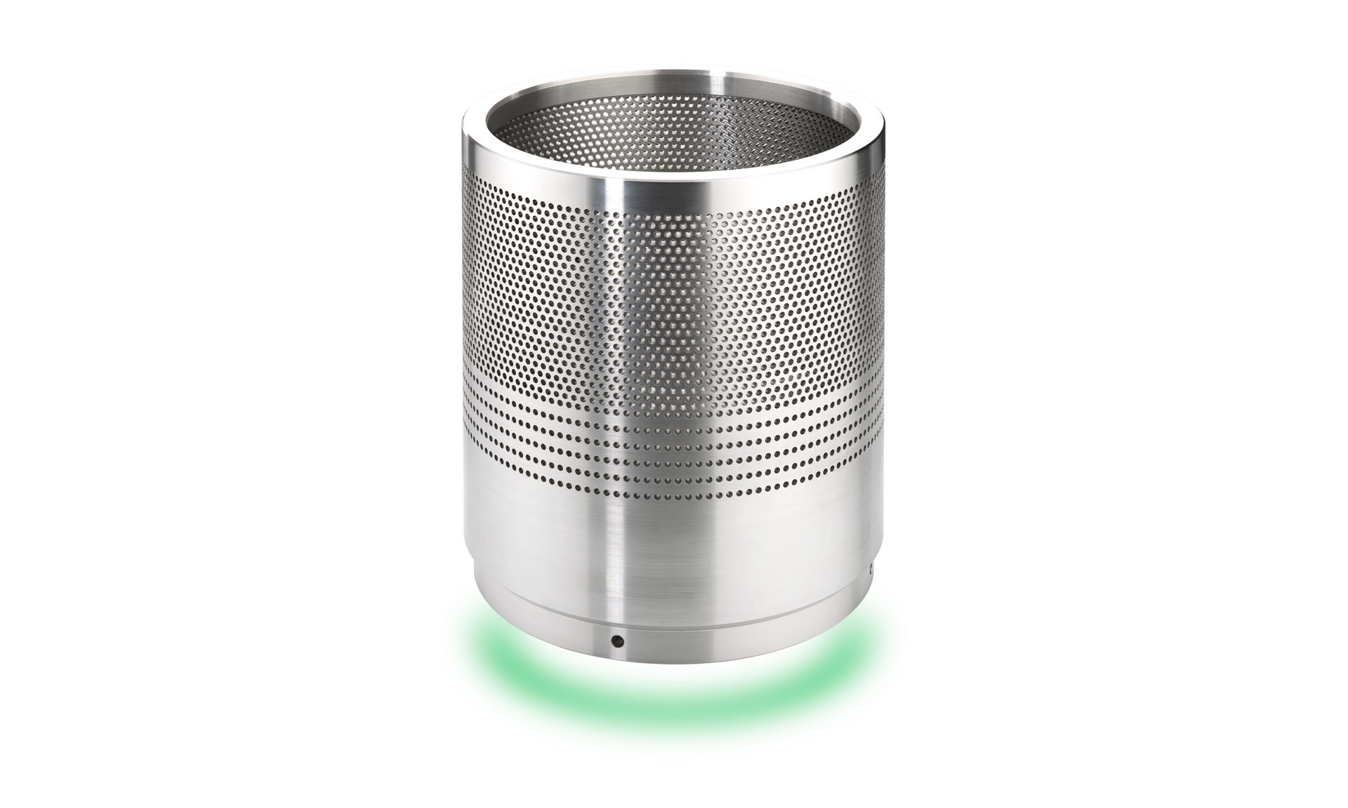 Das Bauteil ist aus einem Schmiederohling aus hochwarmfesten Edelstahl gefertigt und besitzt ca. 5.000 Bohrungen mit einem Durchmesser von 3,5 mm.